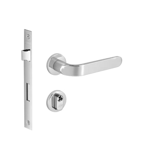 ? Design que se Destaca: Com acabamento cromado e roseta em zamack, essa fechadura adiciona um toque de elegância à sua porta, combinando perfeitamente com diferentes estilos de decoração.