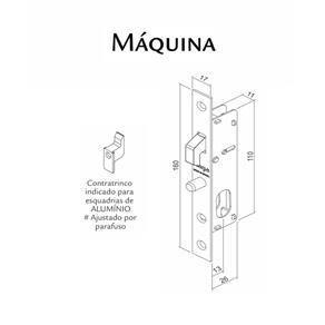 Roseta: 426 em Aço Carbono Cilindro: 131 (52mm) Broca: 13 mm Contra Testa: Ref. 1764 - 2 furos ContraTrinco: em Zamac Obs: ContraTrinco indicado para esquadrias de Alumínio - Ajustado por parafuso