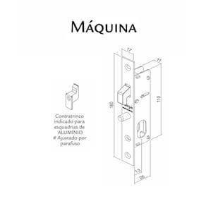 Acabamento : Resinado Preto Roseta: 425 em Aço Carbono Cilindro: 131 (52mm) Broca: 13 mm Contra Testa: Ref. 1764 - 2 furos ContraTrinco: em Zamac Obs: ContraTrinco indicado para esquadrias de Alumínio - Ajustado por parafuso