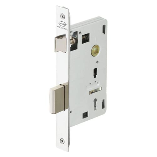 Descrição técnica: imab 1700: Fechaduras de embutir para portas de bater em madeira ou metálicas. Atendem à norma abnt nbr 14913 - tipo iv, com distância de broca de 55 mm e distância entre os eixos da maçaneta e cilindro de 70 mm, com falsa testa em aço inox de 195 x 22 mm, com cantos retos ou arredondados. As fechaduras imab 1700 têm estruturas reforçadas e chapas em aço zincado, com componentes superdimensionados, tratados individualmente contra a corrosão. O cubo de maçaneta tem mola reforçada e sistema antidesgaste. O trinco em zamak tem sistema simplificado de reversão, com recolhimento através da chave, e a lingueta em zamak apresenta sistema de acionamento compatível com cilindros compactos imab 3000, 2500 e 3800.