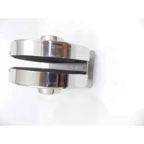 1. Material: aço inox polido. 2. Altura: 98mm 9,8cm . 3. Largura: 98mm 9,8cm . 4. Espessura: 20mm 2cm . 03 chaves codificadas Chave allen para auxiliar na montagem. Acompanha parafusos para fixação caso seja o vidro furado.