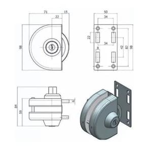 1. Material: aço inox polido. 2. Altura: 98mm 9,8cm . 3. Largura: 98mm 9,8cm . 4. Espessura: 20mm 2cm . 03 chaves codificadas Chave allen para auxiliar na montagem. Acompanha parafusos para fixação caso seja o vidro furado.