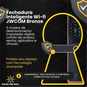 A Fechadura Inteligente Digital Biométria Senha Wi-fi Bronze da JWCOM redefine a maneira como você protege seu lar ou escritório. Com um design elegante em acabamento bronze e construída com materiais de alta resistência, ela oferece a máxima segurança e conveniência. Ideal para quem busca uma solução de controle de acesso avançada, esta fechadura integra biometria, senha numérica, cartão RFID e conectividade Wi-fi, permitindo o gerenciamento completo de qualquer lugar. Perfeita para portas residenciais e comerciais, a SA-FD01 é a escolha inteligente para um futuro mais seguro.