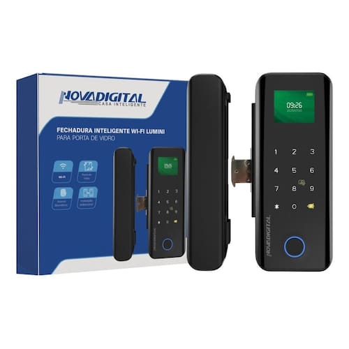 Fechadura Inteligente Wi-fi Smart Porta De Vidro Novadigital Preto
