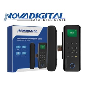 Uma das novidades mais aguardadas pelos clientes da NovaDigital! Apresentamos a Fechadura Inteligente WI-FI LUMINI desenvolvida especialmente para portas de vidro — o produto que chega para completar nossa linha de fechaduras inteligentes com design moderno, alta segurança e praticidade.”