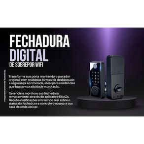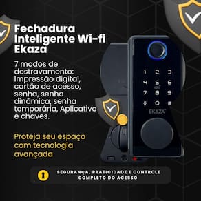 Fechadura Inteligente WiFi Sobrepor Biometria Tag Ekaza Tuya Fechadura Inteligente Wi-Fi de Sobrepor Ekaza - Controle e Segurança Avançados Proteja e automatize sua casa com a Fechadura Inteligente Wi-Fi EKDS-T328 da Ekaza. Com um design robusto e tecnologia avançada, ela oferece segurança, praticidade e controle completo do acesso ao seu ambiente interno. Principais Características Acesso Remoto: Controle e monitore a fechadura de qualquer lugar via aplicativo Tuya ou Ekaza. Múltiplos Métodos de Desbloqueio: Código de Acesso: Crie e gerencie senhas personalizadas para familiares e visitantes. Cartões RFID: Acesso rápido e prático com os cartões inclusos. Chave Física: de desbloqueio em situações de emergência. Segurança Avançada: Receba notificações em tempo real sobre tentativas de acesso forçado. Especificações Técnicas Marca: Ekaza Modelo: EKDS-T328 Conexão: Wi-Fi 2.4 GHz Material: Construção robusta e durável Alimentação: Pilhas Compatibilidade: Totalmente integrado aos sistemas de automação residencial via app Tuya ou Ekaza Direção de abertura: Direita/Esquerda Ambiente de uso: Interno Espessura mínima da porta recomendada: 25 mm Espessura máxima da porta recomendada: 50 mm Quantidade de cartões suportados: 100 Quantidade de códigos numéricos suportados: 100 Homologação Anatel Nº 40042011765 Quantidade máxima de impressões digitais: 100 Com indicador de bateria fraca Aplicativos: Ekaza, Android, Tuya, Smart Life e NovaDigital. : 12 meses contra defeitos de fabricação da Ekaza. Conteúdo da Embalagem 1x Fechadura Inteligente EKDS-T328 2x Cartões RFID 1x Manual de Instruções 1x Chave Física Controle e Monitoramento Inteligente A Fechadura EKDS-T328 é a escolha ideal para quem busca segurança aliada à praticidade. Com múltiplas formas de acesso e monitoramento em tempo real, ela é perfeita para residências, escritórios e estabelecimentos comerciais. Transforme a segurança do seu ambiente com a tecnologia da Fechadura Inteligente Ekaza. Garanta já a sua e proteja seu lar com eficiência e modernidade Necessário ter ou providenciar a rede Wi-fi 2,4GHz, com alta capacidade interna para administração de dispositivos e com boa distribuição do sinal no local. Com a oscilação na conexão do dispositivo, pode acarretar falha na resposta aos comandos via aplicativo, assistentes de voz e não execução de rotinas automáticas agendadas . Consulte um técnico da sua operadora. Marca: Não Informado Ean: 7908228402978
