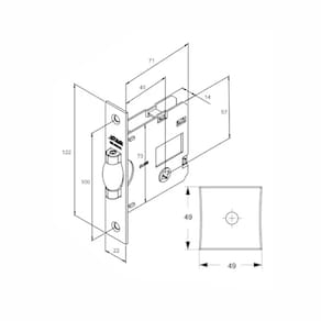 Altura: 122 mm Largura da testa: 22 mm Profundidade da máquina: 71 mm Furação: 49 x 49 mm