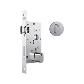 Fechadura Stam 803 Rolete para Porta Pivotante, com Rolete Regulável.Para Uso de puxador. puxador não incluso Características:- Broca 40mm- Marca: Stam- Acabamento: Roseta Redondo Inox Escovado- Testa e Contra Testa em Ferro- Cilindro Zamak Cromado com 2 chaves- Para Porta com Espessura entre 2,5 a 4,5cm- Segurança: Média- Nível de Corrosão: 1- Fechadura permite regulagem da lingueta rolete, permitindo jogar para fora ou dentro.Medidas:altura: 122mmProfundidade: 61mmEspessura: 14mmComprimento do Cilindro: 62mm