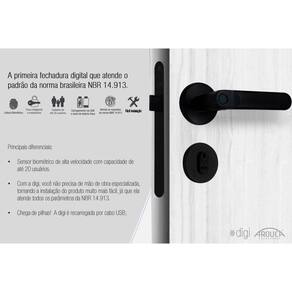 A fechadura Arouca Digi possui design clean e combina a praticidade da biometria com a segurança das chaves.