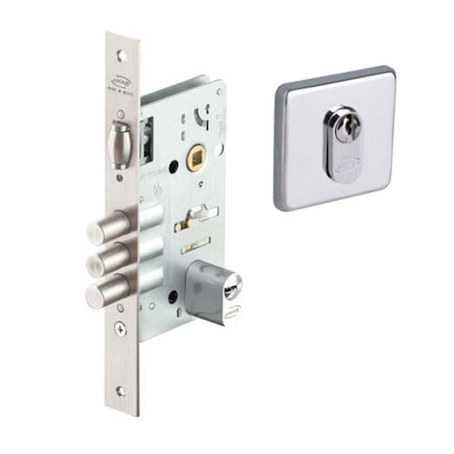 Fechadura rolete 4910 multiponto quadrada cromada Imab 4910: fechaduras de embutir para portas pivotantes ou de bater, em madeira ou metálicas. Atendem à norma abnt nbr 14913, com distância de broca de 55 mm (tipo v), com distância de eixos da maçaneta e cilindro de 70 mm. Chapa testa medindo 224 x 25 mm, com cantos retos ou arredondados. As fechaduras imab 4910 possuem lingueta em forma de 3 pinos rolantes, trinco rolete, chapa testa, contratesta e parafusos em aço inox 304. O cubo de maçaneta com mola reforçada e sistema antidesgaste, caixa em aço e componentes superdimensionados, com tratamento anticorrosão individual. A regulagem da posição do rolete é via parafuso na parte frontal, facilitando o acesso mesmo após a instalação. O trinco tem recolhimento através da chave a lingueta é acionada por sistema de gorges, que são compatíveis com cilindros europerfil. O sistema de desbloqueio da chavefunciona mesmo com outra inserida no lado oposto. Cilindro de segurança imab 4800. Cilindro duplo monobloco em latão maciço, tecnologia tecnoponto, chaves com pontos, segredos gerados por computador, com 6 pinos e contrapinos tipo carretel, com molas de aço inox, chaves em latão niqueladas e came duplo em aço sinterizado de padrão superiorDescrição produto: fech ext 4910 inx rol e81 4800 crCódigo: ez4910c30cr00 - roseta quadradaGuarnição: 0081 - latãoTipo de roseta: quadradaTesta e contra testa: canto quadradoTipo máquina fechadura: ez4910Modelo: fechadura roleteMaterial: inoxAcabamento: cromado - crDistancia de broca: 55 mmModelo do cilindro: 4800 - latãoTamanho do cilindro: 70 mmTipo de tranca: 3 pinosQuantidade de chaves: 5 chaves multipontos Acabamento: cromadoInclui maçaneta: nãoMaterial da caixa: açoQuantidade de chaves: 5Tipo de fechadura: multipontoTipo de instalação: embutirTipo de trinco: rolete