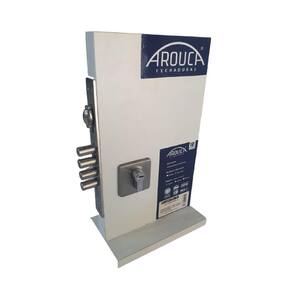 Fechadura Alta Segurança Arouca 4410TR Rolete para Porta Pivotante, com Rolete Regulável.Para Uso com puxador. Puxador não incluso Características:- Broca 55mm- Normativa NBR 14.913- Modelo cilindro: Europerfil - Cilindro Latão de 06 pinos- Fechamento: 04 pinos de aço giratório, super reforçado e resistentes- Testa em inox com 3mm de espessura- Para Porta com Espessura entre 3,0 a 6,5cm- Segurança: Alta- Tipo de chave: Multiponto- Fechadura permite regulagem da lingueta rolete, permitindo jogar para fora ou dentro.Medidas:altura: 200mmProfundidade: 80mmEspessura: 16mmComprimento do Cilindro: 80mm Ean: 1000000180183