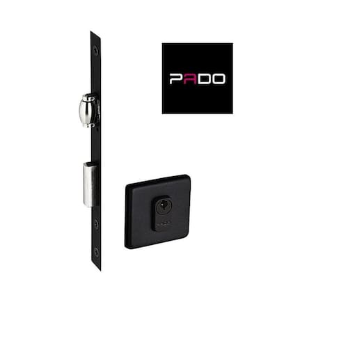 Fechadura rolete porta pivotante pado preta preto máquina 55mm 471 quadrada ept Fechadura rolete pado para porta pivotante Características: