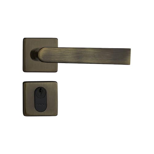 * 2 maçanetas de zamac no acabamento Bronze Oxidado, com acionamento tipo alavanca; fixadas em 2 ferros bicromatizados de 80mm que são fixados por 2 parafusos allen sem cabeça