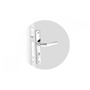 Material: Aço Inox AISI 430 (espelhos, testa), Zamac Cromado (maçanetas), Latão (cilindro), Aço Carbono (contra-testa)
