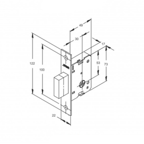 Altura: 122 mm Largura da testa: 22 mm Profundidade da máquina: 73 mm Furação da roseta: 49 mm