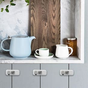Sem necessidade de ferramentas. Instale facilmente a trava de armário à prova de bebê com fitas adesivas dupla face. Basta remover a capa do adesivo e colar a trava de segurança na superfície que você quiser.