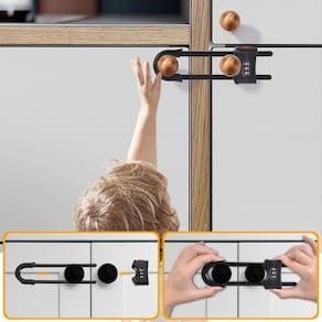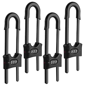 Fechaduras de armário para bebês em forma de U, pacote com 4 - Preto - Você receberá 1 pacote de travas deslizantes de armário com senha no total. Uma quantidade suficiente de fechaduras de segurança pode proteger seu bebê ou criança de se machucar através de armários e gavetas. (Consulte a imagem 2 para o tamanho do produto) - ?Trava atualizada? Cadeados portáteis em forma de U que podem ser utilizados repetidamente sem danificar os móveis, podem até mesmo ser levados em viagens. As configurações de senha fornecem proteção adicional para que crianças mais velhas não possam abri-la - ?AJUSTÁVEL E AMPLAMENTE utilizado?Isso dá a você a flexibilidade para ajustar o comprimento da fechadura, para a maioria das alças em forma de cogumelo, em forma de D e alças de anel (Observação: certifique-se de que a distância entre maçanetas/alças seja menor que 12,7 cm) - ?Design de segurança infantil?As travas de armário à prova de crianças são feitas de material ABS, sem odor. O corpo da fechadura tem bordas duplas lisas que não causarão nenhum dano ao seu filho. esta trava deslizante para armário é à prova de crianças e animais de estimação - ?FÁCIL DE USAR? Esta trava de armário deslizante infantil é muito fácil de instalar e remover sem ferramentas e reutilizável. Depois de flutuar para a senha correta, basta pressionar dois botões ao mesmo tempo para desbloquear/travar