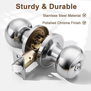 - Material: aço inoxidável; cor: cromo polido; conjunto de bloqueio banhado a aço inoxidável com acabamento em níquel acetinado que não enferruja, durável para uso duradouro. Ótima qualidade e alta segurança: em conformidade com ANSI grau 3 excede 200.000 cilindros e cilindro de latão de 5 pinos; parafuso de segurança de coluna sólida para proteção anti-serragem
