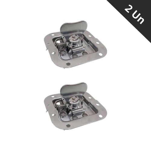 Fecho de metal pequeno borboleta e acabamento cromado com porta cadeado para cases e maletas. Características: - Altura:77 mm; - Comprimento: 82 mm; - 10 furos para fixação.