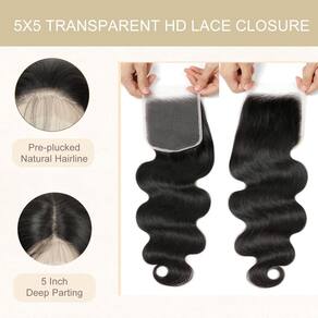 Lace Material:Transparent Lace Closure, Breathable and Comfortable
