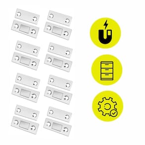 Fecho Magnético Armário Porta Imã Ultra Forte Kit com 8 Peças Solução Magnética Fecho Magnético Armário Porta Imã Ultra Forte Kit com 8 Peças Solução Magnética Descubra a inovação em segurança com nossa trava magnética de gaveta, tão discreta que você mal notará sua presença, mas poderosa o suficiente para manter fechadas portas, janelas, gavetas e armários com firmeza. Com o conjunto de 8 fechos magnéticos, junto com fitas dupla face para instalação sem furos, ou utilize os parafusos incluídos para uma montagem mais tradicional. Desenvolvida com a força da atração magnética, nossa trava garante a segurança das crianças curiosas e previne acidentes indesejados. Desfrute do design ultrafino, com apenas 0.4cm de espessura, capaz de suportar até 10 lbs magnética. Fabricados com material metálico resistente à corrosão, nossos ímãs são duráveis e confiáveis, eliminando a preocupação com parafusos quebradiços durante a instalação. ESPECIFICAÇÕES: - Fecho Magnético de Alta Resistência; - Design Ultrafino para Máxima Discrição; - Fácil Instalação com Fitas Dupla Face ou Parafusos Inclusos; - Força Magnética de até 10 KG; - Material Durável: Aço Inox Cromado; Dimensões Aproximadas: Imã Maior: Comprimento: 4.2cm Largura: 1.7cm Largura entre os Furos: 2.6cm Imã Menor: Comprimento: 3.7cm Largura: 1.5cm Largura entre os Furos: 2.8cm Espessura Aproximada: 0.4cm ambos os ímãs juntos Conteúdo da Embalagem: 8 Pares de Ímãs + 16 Fitas Dupla Face + Kit de Parafusos + Manual de Instruções Marca: Não Informado