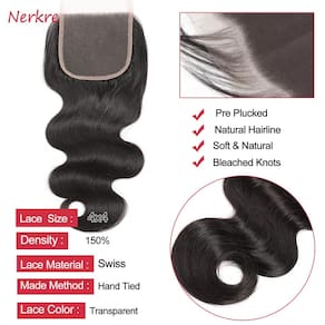 - ?4x4 Lace Closure Features?4x4 HD transparent lace closure human hair body wave closure; 150% density; True to length,full and thick; 10-22 inch available, natural black color; Pre plucked natural hairline with baby hair.