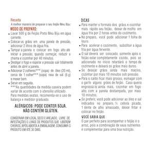 O Feijão Preto Meu Biju é rico em fibras, fonte de ferro e fósforo. O produto passa por um criterioso controle de qualidade, que começa na escolha da matéria-prima e segue por um processo industrial que conta com a seleção eletrônica de grãos, garantindo ao produto ótimo padrão de cozimento.