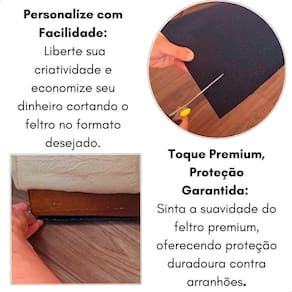 Limpe cuidadosamente a superfície onde deseja aplicar o feltro, garantindo que esteja livre de poeira e oleosidade para uma aderência ideal. Remova o filme protetor da peça de feltro, tomando cuidado para não tocar na área adesiva com os dedos. Posicione o feltro no local desejado e pressione firmemente para garantir uma fixação segura e duradoura. Com o Feltro Retangular 127x51mm Preto Cartela 2 Unidades Tekbond, você pode proteger seus móveis, pisos e superfícies com eficiência, mantendo sua integridade e beleza por mais tempo. Não permita que batidas e arranhões comprometam a aparência e a funcionalidade de seus objetos - adquira já este produto e desfrute de uma proteção confiável e duradoura em todos os seus ambientes.