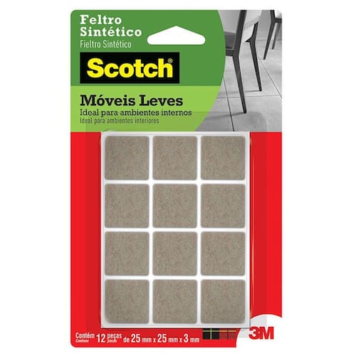 Feltro sintético para móveis leves Scotch quadrado marrom Médio c/12 unid - 3M