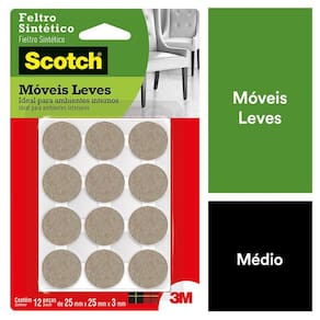 Feltro sintético para móveis leves Scotch redondo marrom Médio c/12 unid - 3M