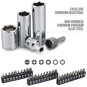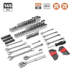 O conjunto de soquetes de 145 peças combina os soquetes, chaves inglesas e chaves hexagonais mais populares para facilitar a acessibilidade. Também inclui os bits de chave de fenda mais comuns. Corpo forjado em aço cromo vanádio para torque, força e durabilidade Acabamento em cromo polido completo para proteção anticorrosiva Interruptor de liberação rápida e mecanismo reversível para fácil operação tamanhos métrico e SAE incluídos a Case fornece zenamento e portabilidade de ferramentas Marca: Não Informado