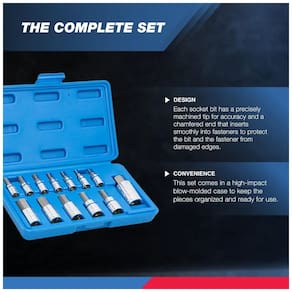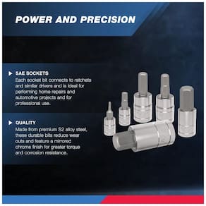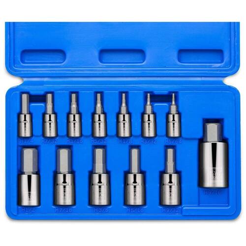 As brocas são fabricadas em aço de liga S2 premium para dureza superior que reduz o desgaste e garantem a longevidade. Soquetes de aço vanádio de alta resistência fornecem torque superior para maior potência de torneamento com acabamento cromado no espelho para resistência à corrosão. Dicas de brocas allen de precisão e usinadas automaticamente tamanho preciso, pontas de brocas chanfradas inserem se suavemente nos fixadores e protegem os bits e os fixadores de bordas danificadas. O conjunto inclui um estojo de plástico resistente para zenamento e fácil transporte. O conjunto de soquetes de bit hexagonal SAE de 13 peças inclui 1, 4 5, 64 , 3, 32, 1, 8 , 5, 32, 3, 16 , 7, 32, 1, 4 Unidade de 3, 8 9, 32, 5, 16 , 3, 8, 7, 16 , 1, 2 Movimentação de 1, 2 16, 9. Conjuntos de brocas hexagonais de qualidade, feitos com aço liga de cromo vanádio, polidos a espelho e cromados, forjados a gota e tratados com aço. Unidade de 1, 4 5, 64, 3, 32 1, 8, 5, 32, 3, 16, 7, 32, 1, 4. Unidade de 3, 8, 9, 32, 5, 16, 3, 8, 7, 16, 1, 2. Unidade de 1, 2 polegada 9, 16. Conjuntos de brocas hexagonais de qualidade, feitos com aço liga Cr V, polidos a espelho e cromados, forjados a gota e tratados com aço