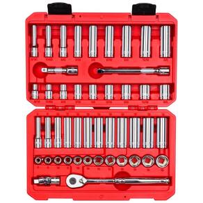 Ferramenta Automotiva Soquete e Catraca de 6 Pontos de Acionamento 8 a 19mm 47 Peças com estojo, TEKTON SKT15301, Vermelho