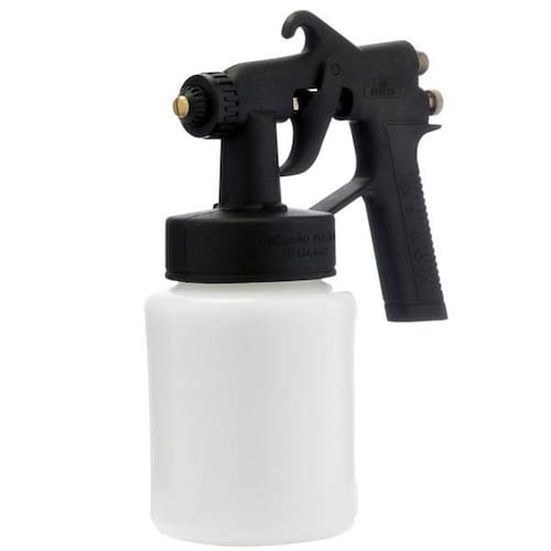 - ferramenta de aplicação indicada para qualquer tipo de pintura, corpo injetado em nylon com fibra de vidro de grande resistência e caneca tipo rosca de polietileno de alta densidade. Adaptável a - - compressores portáteis, sem reservatório, o que permite fácil transporte. Fornecida com espalhador de leque e redondo. - corpo e caneca em plástico. - ideal para trabalhar em compressores que não possuam reservatório ar-direto . Importante: em compressores com reservatório, deverá ser utilizado válvula reguladora de pressão ou filtro de ar, para se manter a pressão até o limite de 40lbs/pol que não deverá ultrapassar sob o risco de danificar a caneca. Especificações: - pressão de trabalho: máxima 40 psi - consumo de ar: 0,90 pcm - bico: 1,2 mm - capacidade da caneca: 500 ml - compressor indicado: ar direto