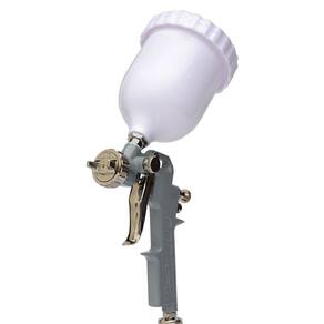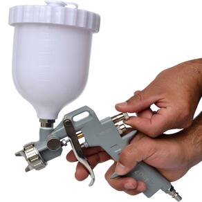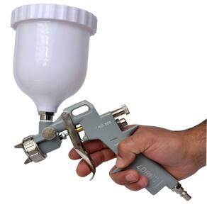 Ferramenta de aplicação de pintura gravidade bico 1,5 pdr pro-500 isso sim é menos custo e muito mais benefício, parceria perfeita em seus trabalhos, baixo consumo de ar sem desperdício de tinta. Ideal para pinturas, aplicação de materiais como primer, fundo, materiais de alta viscosidade. Características: opera com média pressão alta vida útil e fácil limpeza ótima qualidade de pintura regulagem de leque e de tinta caneco em pvc especial branco simples, porém muito eficiente. Especificações técnicas: bico: 1. 5mm tipo: gravidade entrada de ar: 1/4 volume da caneca: 500ml consumo médio de ar: 6pcm pressão de trabalho: 45 a 60psi. Dimensões aproximadas: peso: 600g altura: 35cm largura: 10cm comprimento: 16cm. Acompanha: 01 pino de engate 01 escova de limpeza 01 chave de manutenção.