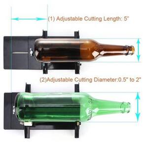 As características destacadas funcionam perfeitamente. Basta colocar sua garrafa no dispositivo de suporte, aplicar pressão e girar; aqueça a partitura em água fervida e água fria, banhe-se alternadamente três vezes. Fácil e simples de usar. Mais resistente e fácil de usar do que os modelos de plástico, este cortador de garrafas de metal altamente durável permitirá que você corte garrafas perfeitamente em 5 etapas fáceis. Este cortador de garrafas de vidro demora um pouco para se acostumar, mas depois de dominá-lo, você poderá cortar garrafas de vinho facilmente. CORTE SUAVE. Os resultados o surpreenderão, limpe as lacunas quase sempre. Até garrafas grossas de champanhe podem ser cortadas facilmente. Eles quebram com facilidade e suavidade. Criativo e conveniente: pode até fazer você se sentir melhor com todos os vinhos que está bebendo e ajudar a contribuir com o meio ambiente. O cortador verde é adequado para garrafas de 23 cm (de comprimento); o preto é perfeito para garrafas de 16 cm (curtas). (O comprimento vai do fundo da garrafa até o local onde você deseja cortar.) Veja menos