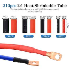 Lista de pacotes: 1 x crimpador elétrico 1 x cortador de cabo 170 x talão de cobre 210 x tubo termorretrátil 1 x caixa de plástico para terminal de cobre - ?Kit completo?- você receberá uma ferramenta de crimpagem de cabo de bateria, um cortador de cabo, 170 peças de bloco de terminais de anel de cobre, 210 tubos termorretráteis, o tamanho e a quantidade estão completos para atender às suas várias necessidades. - ?Crimpador de pinos 10-1/0? - As ferramentas profissionais de crimpagem de terminais de cabo têm 6 mm²/10 mm²/16 mm²/25 mm²/35 mm²/50 mm² (semelhante a AWG 10, 8, 5, 3, 2, 0). Ele usa garras de alta precisão para garantir uma conexão firme após a crimpagem. - ?Cobre de grau eletrolítico?- Todos os terminais de anel são feitos de cobre de grau eletrolítico para alcançar a máxima condutividade. O tubo termorretrátil é feito de material de polietileno de alta qualidade, espesso e durável. - ?Crimpagem econômica?- A alça do dispositivo de crimpagem tem até 25 cm de comprimento e é envolvida com borracha macia. O design ergonômico da estrutura da alavanca pode aumentar o atrito e economizar mais trabalho ao crimpar. - ?Tubo termorretrátil?- O tubo termorretrátil é feito de material de polietileno de alta qualidade, espesso e durável.