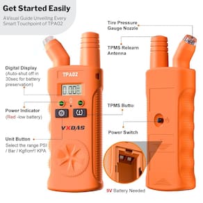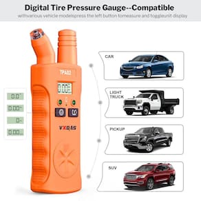 Mantenha seus pneus em forma superior: VXDAS TPMS Relearn Tool Plus é uma ferramenta 2 em 1 que reinicia seu sensor e mantém a pressão dos pneus. Funciona na maioria dos veículos GM e Ford (Chevy / Buick / GMC / Opel /Cadillac etc) equipado com 315/433 MHz. - Mantenha seus pneus em forma superior: VXDAS TPMS Relearn Tool Plus é uma ferramenta 2 em 1 que redefine o sensor e mantém a pressão dos pneus. Funciona na maioria dos veículos GM e Ford (Chevy / Buick / GMC / Opel /Cadillac etc) equipado com 315/433 MHz. - Medidor de pressão digital preciso dos pneus: Display digital lendo instantaneamente e claramente. Gire entre PSI, BAR, KPA e Kg/cm^2. Redefina todos os pneus em apenas 3 passos. Funciona em todos os carros, motocicletas e bicicletas. - Eficiência energética e amigável ao usuário: nossa ferramenta TPMS desliga automaticamente após 30 segundos para economizar a vida útil da bateria, apresentando uma bateria substituível de 9V (não incluída) e um interruptor de alimentação. - Presente perfeito para entusiastas de carros: reinicie o sensor de pressão do pneu sozinho e economize de US$ 50 a 100 cada vez. Permite que você libere o ar extra se inflar demais o pneu. Aprovado pela CE e FCC. A VXDAS oferece 12 meses de garantia. - UNIDADE FAMILIAR: presentes perfeitos para acessórios de carro para homens, mulheres e crianças. Mantenha sua família segura na estrada com a ferramenta VXDAS TPMS Relearn Plus.