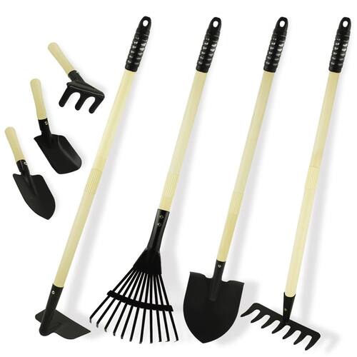 ferramentas de jardim para crianças - Inclui 7 ferramentas de jardim para crianças, conjunto de 4 peças de ancinho e pá para meninos e meninas de 4 a 8 anos, 3 ferramentas de jardinagem curtas para crianças pequenas - O comprimento das ferramentas de jardim longas é de cerca de 71 cm e o peso é de cerca de 300 g, é fácil de transportar para pequenos jardineiros. E eles são destacáveis, o que pode economizar espaço - O comprimento curto da ferramenta é de cerca de 18 cm, tamanho certo para crianças pequenas - Todas as ferramentas são feitas de cabo de madeira e cabeça de metal. Durável o suficiente para crianças que fazem trabalhos de jardinagem de verdade, leve o suficiente para crianças usarem - Ótimos presentes para meninos e meninas de 3, 4, 5, 6, 7, 8, 9, 10 anos de idade no Natal, aniversário...