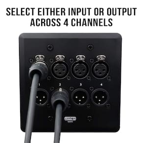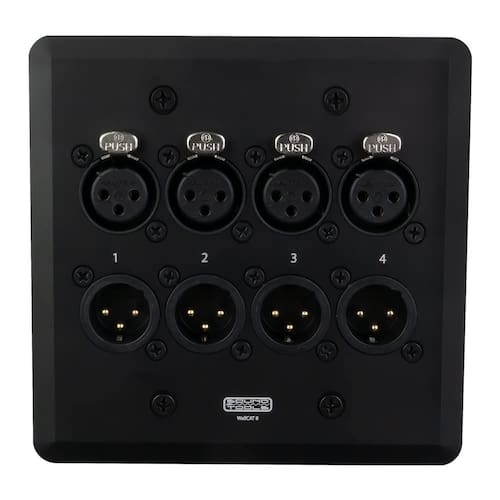 - XLR de 4 canais – Todas as conexões que você precisa, incluindo 8 conectores Neutrik XLR (4 machos, 4 fêmeas com fio em paralelo) na frente e 2 conexões Amphenol RJ45 na parte traseira, vêm pré-instaladas e claramente etiquetadas. Perfeito para estúdios domésticos, locais de música, salas de concerto e até mesmo em seu prédio de escritórios.