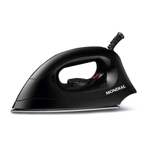 Aquele ferro prático que cabe em qualquer lugar... O Ferro a Seco com Base de Alumínio Polido FSN-55-B preto da Mondial é um ferro de passar roupas que aquece rápido, desliza com segurança, tem 6 temperaturas e 1000W de potência. Com DESIGN ANATÔMICO, o FSN-55-B tem estilo moderno e seu deslizamento fácil faz com que passar roupas não seja um sufoco ou musculação. Sua BASE DE ALUMÍNIO POLIDO permite a distribuição uniforme e rápida do calor, portanto serve muito bem a quem não precisa de vapor para desamassar os vincos mais difíceis - e é perfeito para aqueles que gostam de dar uma alisada rápida nas peças antes de vestir e sair. O Ferro de passar FSN-55-B conta com 6 níveis de temperaturas para ser adequado a tecidos dos mais leves e delicados aos pesados, de fios naturais. Com proteção e segurança, conta com SALVA-BOTÕES EM TODA A BASE e LÂMPADA PILOTO que indica quando está ligado. 1 ANO DE GARANTIA, desenvolvido para uso doméstico.