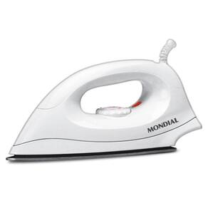 Ferro a Seco Mondial FSN-55-W é prático e fácil de usar. Possui design anatômico confortável para passar e base de alumínio polido que desliza suavemente sobre os tecidos, distribuindo o calor de forma uniforme e rápida. Conta com sistema Salva Botões, para maior durabilidade e precisão na hora de passar, sem estragar suas roupas, além de seletor de temperatura e lâmpada piloto. Saiba mais sobre o FSN-55-W da Mondial: