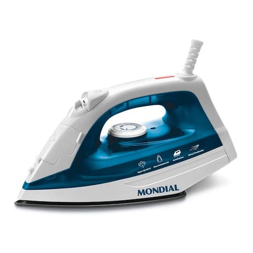 Ferro a Vapor Antiaderente Mondial F32 com Spray - Branco/Azul 220VCódigo do Produto: 54852O Ferro a Vapor Mondial F32 vai facilitar ainda mais as tarefas de casa. Agora passar roupa nunca foi tão fácil, sua base antiaderente desliza sob os tecidos e tira todos os amassados com muita rapidez. Para os vincos mais difíceis pode ser usado o vapor ou spray para deixar as roupas mais macias facilitando na hora de passar. Com controle de temperatura e saída de vapor, proporcionando o ajuste perfeito para cada tipo de tecido evitando danos e queimaduras nas roupas. Possui lâmpada piloto para indicar o funcionamento e sistema autolimpante.Características Gerais Lampada PilotoVapor extra Base antiaderente Controle de saída de vapor Sistema autolimpante Cabo elétrico com giro de 360 grausLâmpada-piloto Copo medidor Tomada 10ASeletor de intensidade de vapor SimSeletor de temperatura SimSpray SimBase AntiaderenteEspecificações TécnicasConsumo de energia (kW/h) 1,2Cor branco/azulPotência (W) 1200Tensão/Voltagem 220VConteúdo da Embalagem1 Ferro a Vapor Mondial F32 1 Copo medidorManual de instruçõesGarantia 12 mesesDimensõesAltura 12,50 CentimetrosLargura 25,50 CentimetrosProfundidade 10,70 CentimetrosPeso 840,00 GramasAtenção: Voltagem 220V Ean: 7898490166633