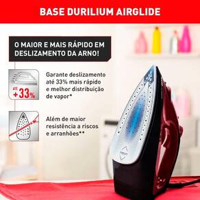 O Ferro a Vapor Arno Ultragliss é o n1 em deslizamento, graças a base Durilium Airglide, que preserva a qualidade das roupas, deslizando rapidamente em diferentes tipos de tecidos e alcançando alto rendimento em pouco tempo. Como se não bastasse, essa base ainda é resistente a riscos e arranhões, e não deixa brilho no tecido.
