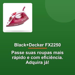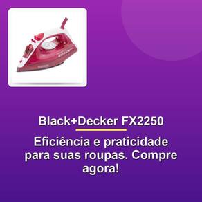 Ferro A Vapor Black+decker Fx2250-b2 110V Descubra a eficiência do Ferro a Vapor Black+Decker FX2250-B2, projetado para facilitar seu dia a dia. Com potência de 1200W, ele garante um aquecimento rápido e eficaz, proporcionando roupas impecáveis em menos tempo. Sua tensão de 110V é ideal para a maioria das residências, enquanto a base antiaderente desliza suavemente sobre os tecidos, evitando danos. A marca Black+Decker é sinônimo de qualidade e durabilidade, assegurando um produto confiável. Transforme a tarefa de passar roupas em uma experiência prática e sem esforço com este ferro a vapor inovador. Descubra a eficiência do Ferro a Vapor Black+Decker FX2250-B2, projetado para facilitar seu dia a dia. Com potência de 1200W, ele garante um aquecimento rápido e eficaz, proporcionando roupas impecáveis em menos tempo. Sua tensão de 110V é ideal para a maioria das residências, enquanto a base antiaderente desliza suavemente sobre os tecidos, evitando danos. A marca Black+Decker é sinônimo de qualidade e durabilidade, assegurando um produto confiável. Transforme a tarefa de passar roupas em uma experiência prática e sem esforço com este ferro a vapor inovador. Marca: Não Informado