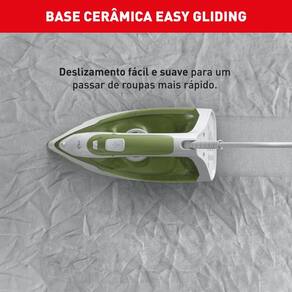 Utilizando o modo ECO, você economiza até 20% de energia elétrica, enquanto desfruta de resultados eficientes em um piscar de olhos.Sua Base de Cerâmica Easy Gliding oferece um deslizamento suave e eficiente, garantindo um cuidado delicado com suas roupas.