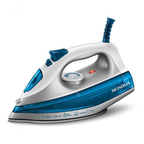Aquele ferro prático que cabe em qualquer lugar... O Ferro a Seco com Base de Alumínio Polido FSN-55-BL azul da Mondial é um ferro de passar roupas que aquece rápido, desliza com , tem 6 temperaturas e 1000W de potência. Com design anatômico, o FSN-55-BL tem estilo moderno e seu deslizamento fácil faz com que passar roupas não seja um sufoco ou musculação. Sua base de alumínio polido permite a uniforme e rápida do calor, portanto serve muito bem a quem não precisa de vapor para desamassar os vincos mais difíceis - e é perfeito para aqueles que gostam de dar uma alisada rápida nas peças antes de vestir e sair. O Ferro de passar FSN-55-BL conta com 6 níveis de temperaturas para ser adequado a tecidos dos mais leves e delicados aos pesados, de fios naturais. Com proteção e , conta com salva-botões em toda a base e lâmpada piloto que indica quando está ligado. 1 ano de garantia, desenvolvido para uso doméstico.
