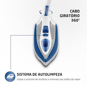 Recursos - Base Cêramica; Salva Botões em Toda Base; Controle de Saída de Vapor; Vapor Extra; LED Luminoso; Cabo Giratório; Spray UmedecedorSistema AutoLimpante;
