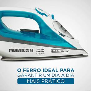 Desempenho Profissional em Cada Passada O Ferro de Passar a Vapor Black Decker FX3060-BR é a solução definitiva para deixar suas roupas impecáveis e livres de amassos indesejados. Com uma base antiaderente de alta qualidade, este ferro desliza suavemente sobre os tecidos, garantindo ótimos resultados em cada passada.