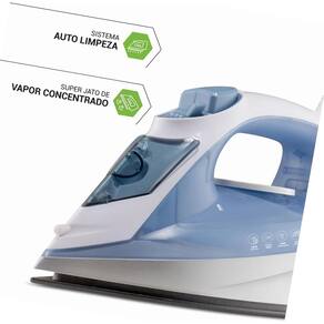 - Base antiaderente - Função vapor - Função jato extra de vapor - Função jato d’água - 38 saídas de vapor - Vapor vertical - Tanque com capacidade de 245ml - Função autolimpeza - Copo dosador - Cordão emborrachado - Cordão elétrico com 1,50m - Salva botões - Luz indicadora de funcionamento - Vazão de vapor de 19g/min